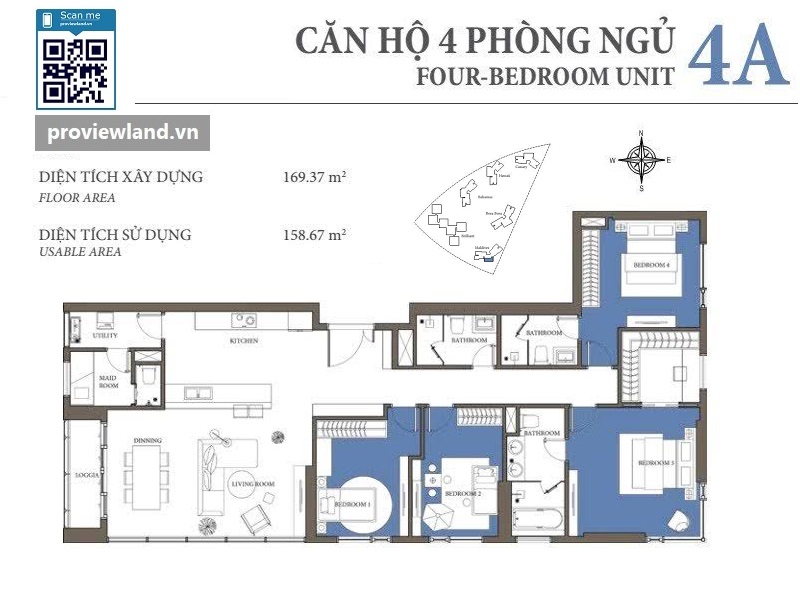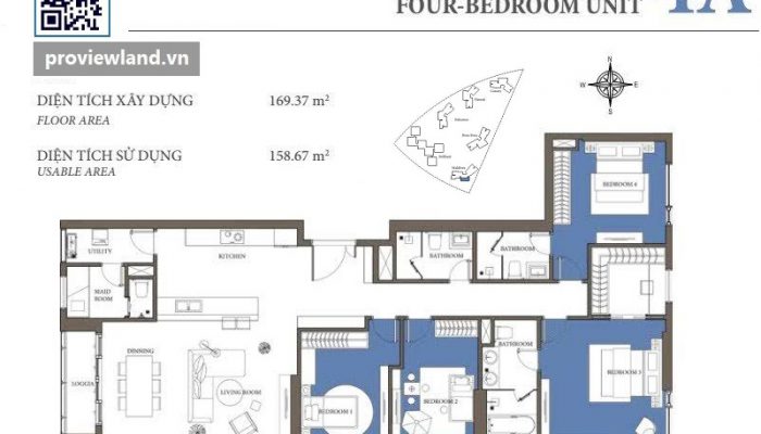 Diamond Island sells Maldives apartments with 4 bedrooms, 3 bathrooms, living room, dressing room, dining room and kitchen with a total area of 169m2.