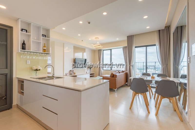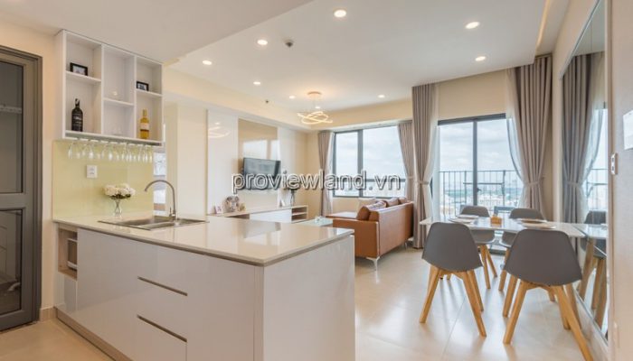 Masteri Thao Dien apartment for rent, Tower T5A, high floor has an area of 90.67m2. The balcony overlooks the bustling city. 3 bedrooms, 2 fully equipped bathrooms. High-class apartment fully furnished with luxurious design, full furniture