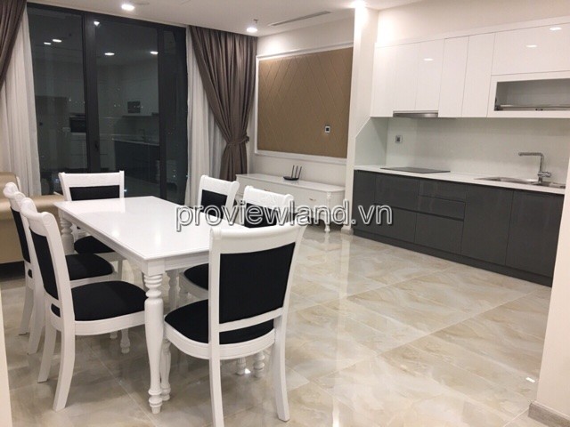 Apartment for rent at Vinhomes Golden River, high floor, river view and landmark 81, area 88m2, fully furnished. The apartment has 2 bedrooms, 2 bathrooms, living room is designed with kitchen and dining table.
