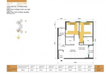 + 05: 63 sqm of area 2 bedrooms, price: 2.5 billion VND ~ 112181,76 USD