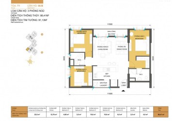 + 06: 87 sqm of area 3 bedrooms, price: 3.5 billion VND ~ 157054,46 USD