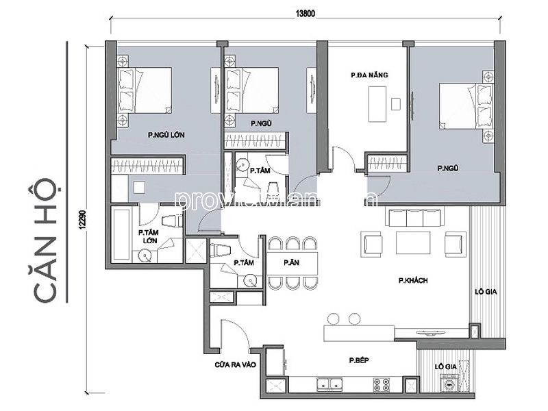 Apartment for sale in Vinhomes Central Park VHCP has an area of 153.6m2, clear area of 143.3m2, architecture includes 4 bedrooms, 3 bathrooms, living room, dining room, kitchen, southeast balcony, … luxurious design.
