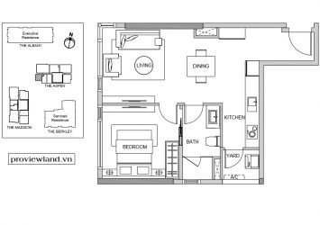 Gateway Thao Dien apartment for sale at the low floor Aspen tower, area of 50m2, apartment with 1 bedroom, 1 bathroom, … are furnished with high-class furniture, nice view.