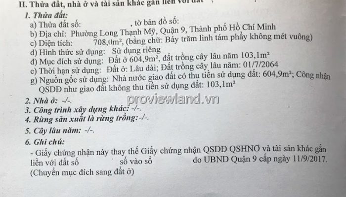 – Land area of 708m2. Of which, there is 604.9m2 of residential land, the remaining 103.1m2 is land for perennial crops.
