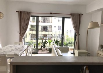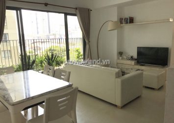 Masteri Thao Dien apartment for rent is located in the low-floor corner of T4 tower with an area of 74m2 with 2 bedrooms, 2 bathrooms, not only very quiet but also easy to enjoy the fresh air. From the balcony possesses a wide view of the interior and a beautiful swimming pool. The owner is fully equipped with high-class furniture: TV, sofa, dining table, refrigerator, air conditioner, water heater, built-in wardrobe, bed, mattress, kitchen, cable, internet Wi-Fi. New interior has a minimalist modern style in harmony with the overall apartment.