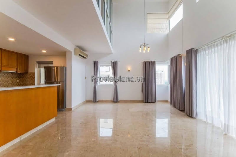 Duplex apartment for sale at River Garden Thao Dien has an area of 250m2, architecture includes 2 floors, with 4 bedrooms, 4 bathrooms, large living room, dining room, kitchen, … modern design.