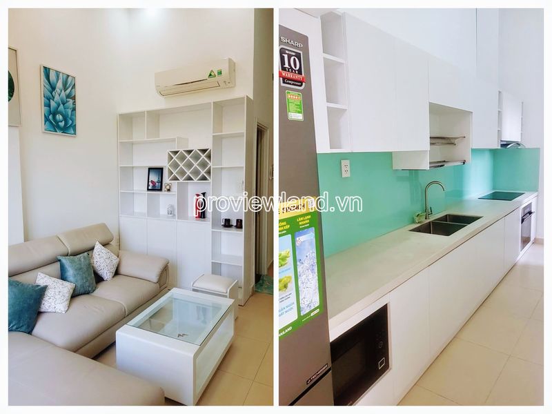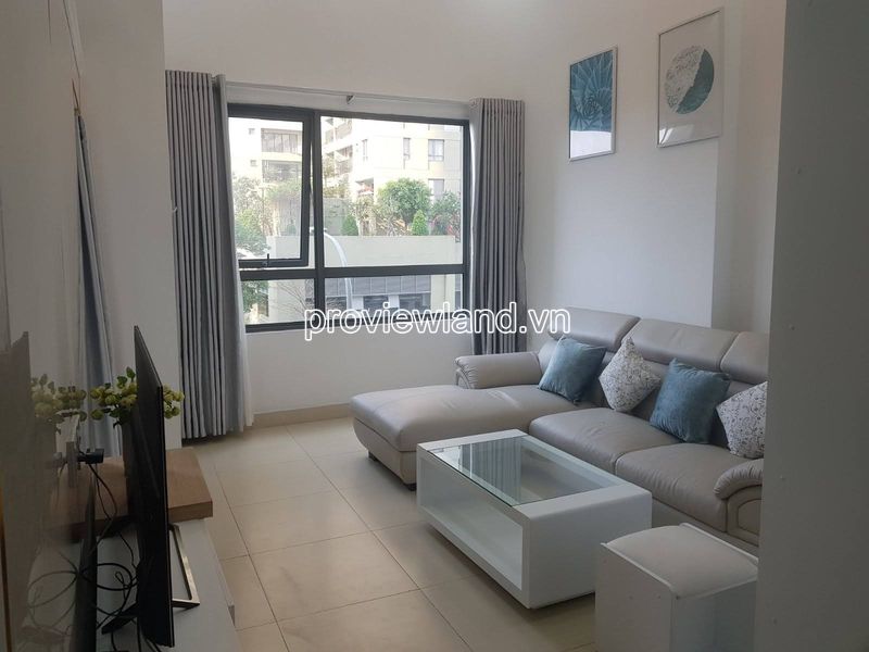 Duplex apartment for rent in Masteri Thao Dien has an area of 105m2, 2-storey apartment architecture, with 2 bedrooms, 2 bathrooms, living room, dining room, kitchen, … airy space. Luxury design.