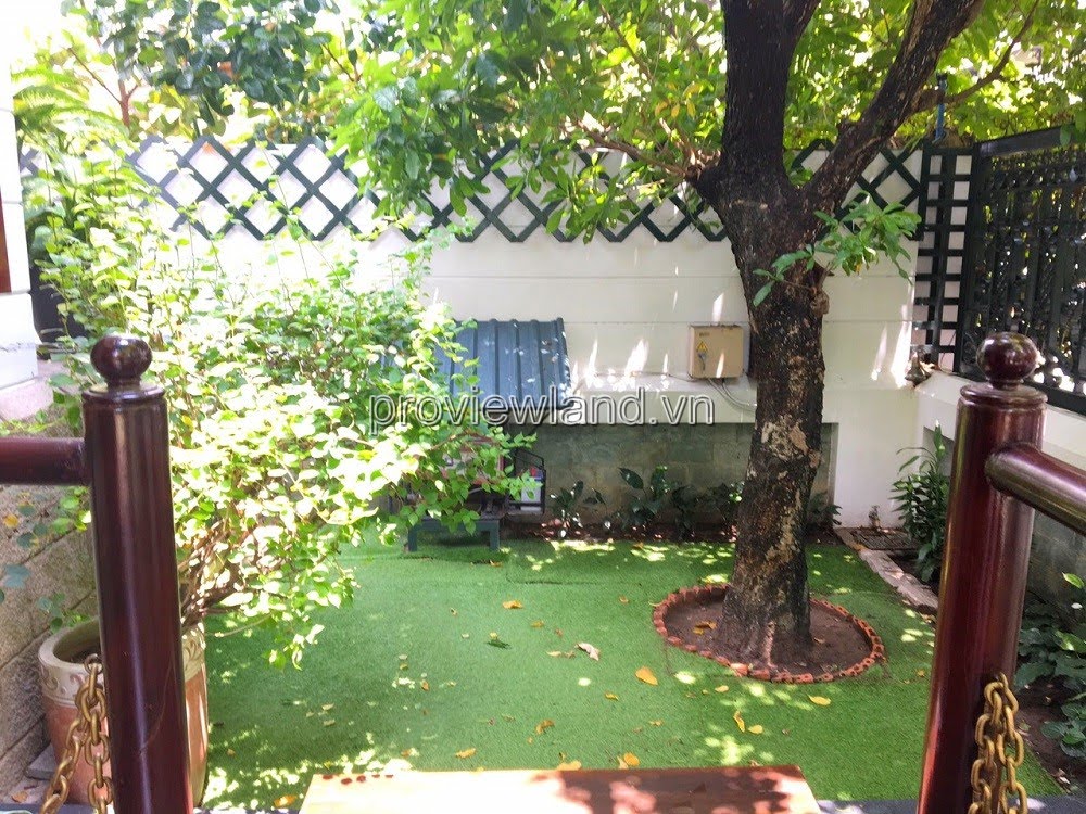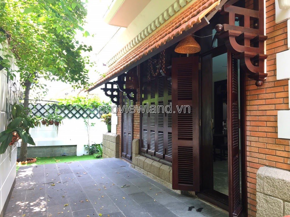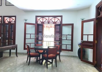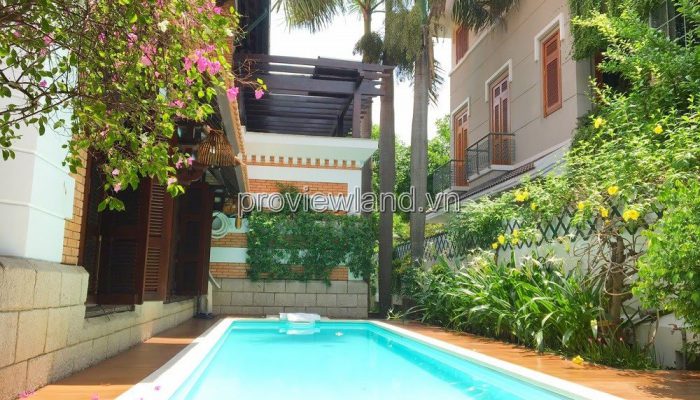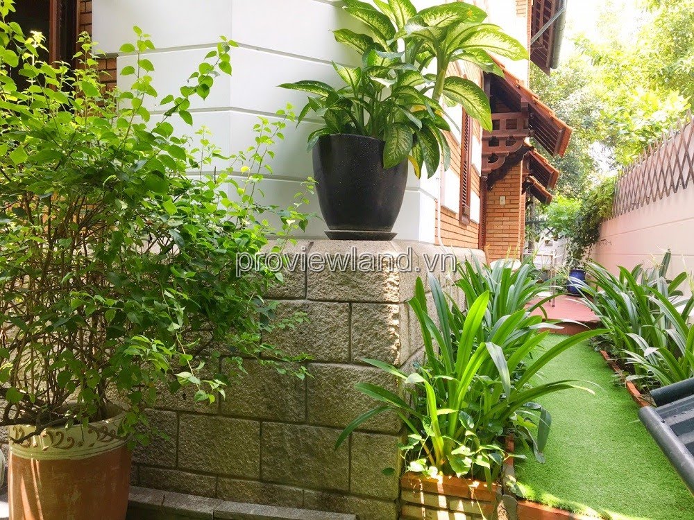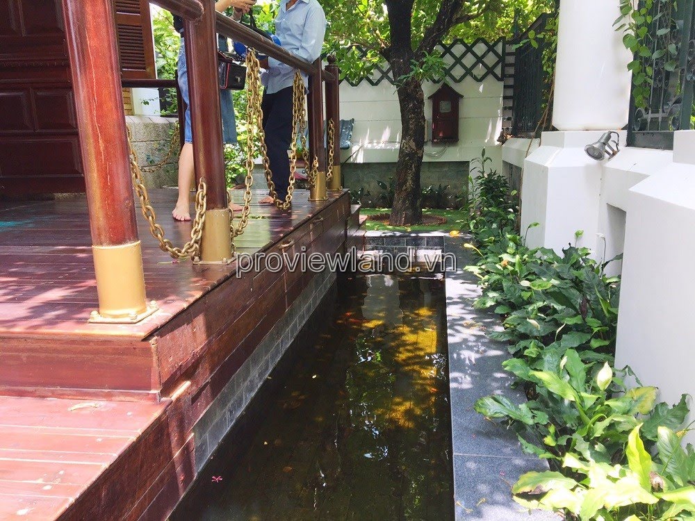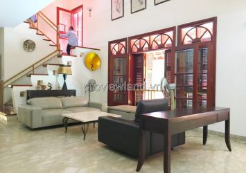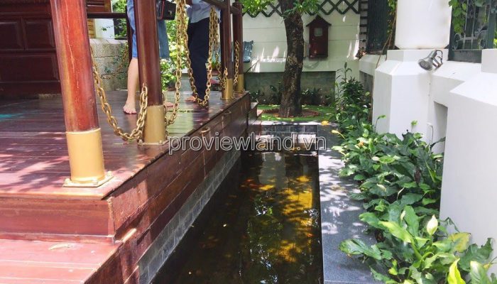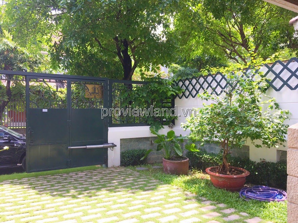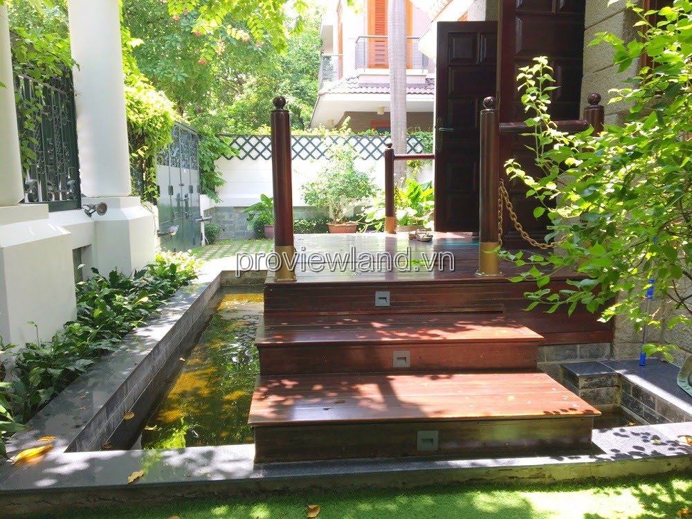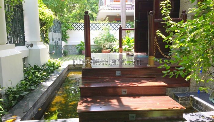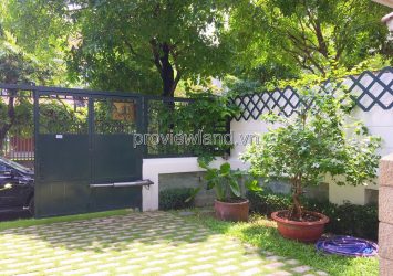 Villa for rent at Fideco Thao Dien high-class villa area, area 450m2. The villa has 1 ground floor, 1 floor, attic and garden. There are 4 bedrooms, 2 living rooms, kitchen. Villa is fully equipped with furniture, garage, swimming pool, fish pond, convenient to stay.