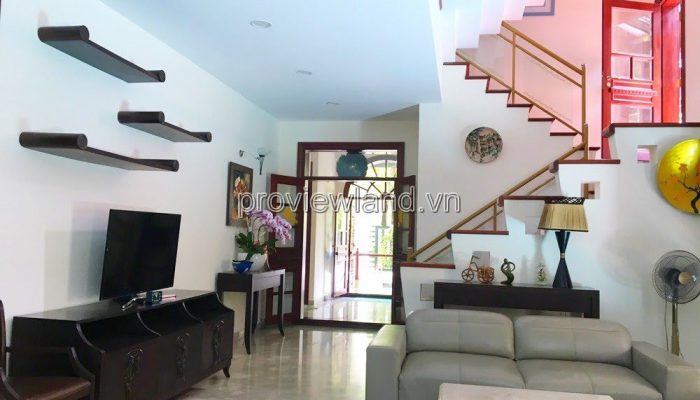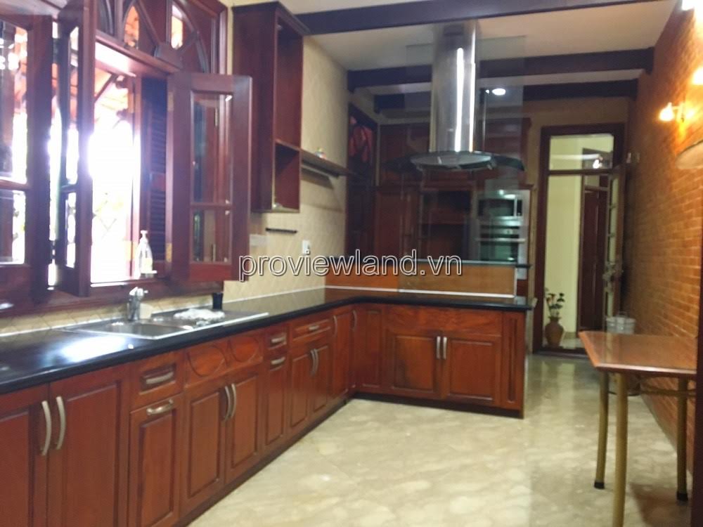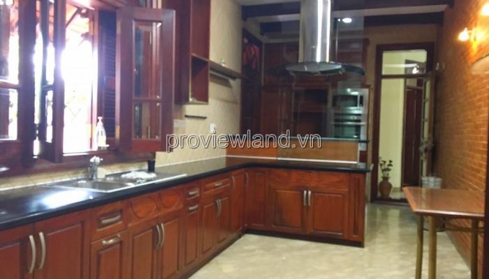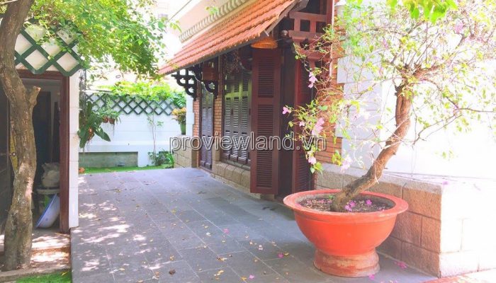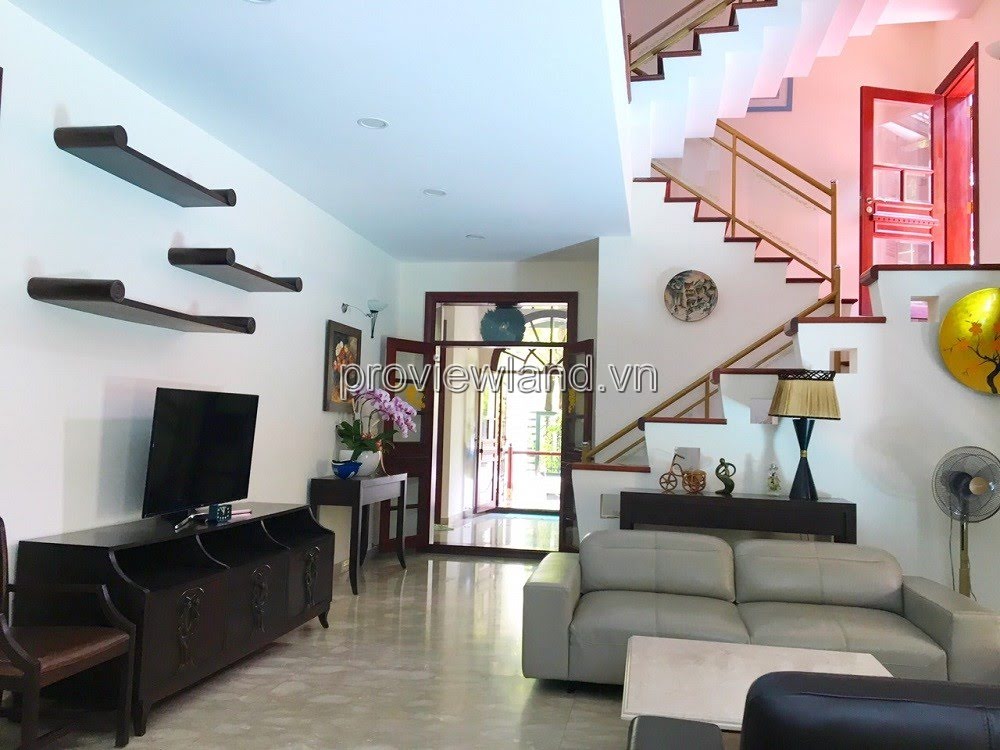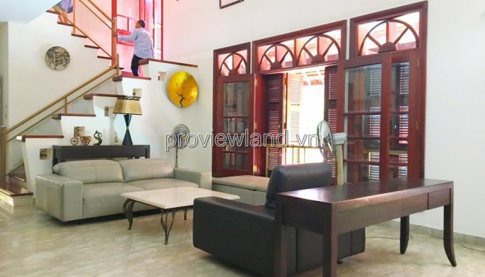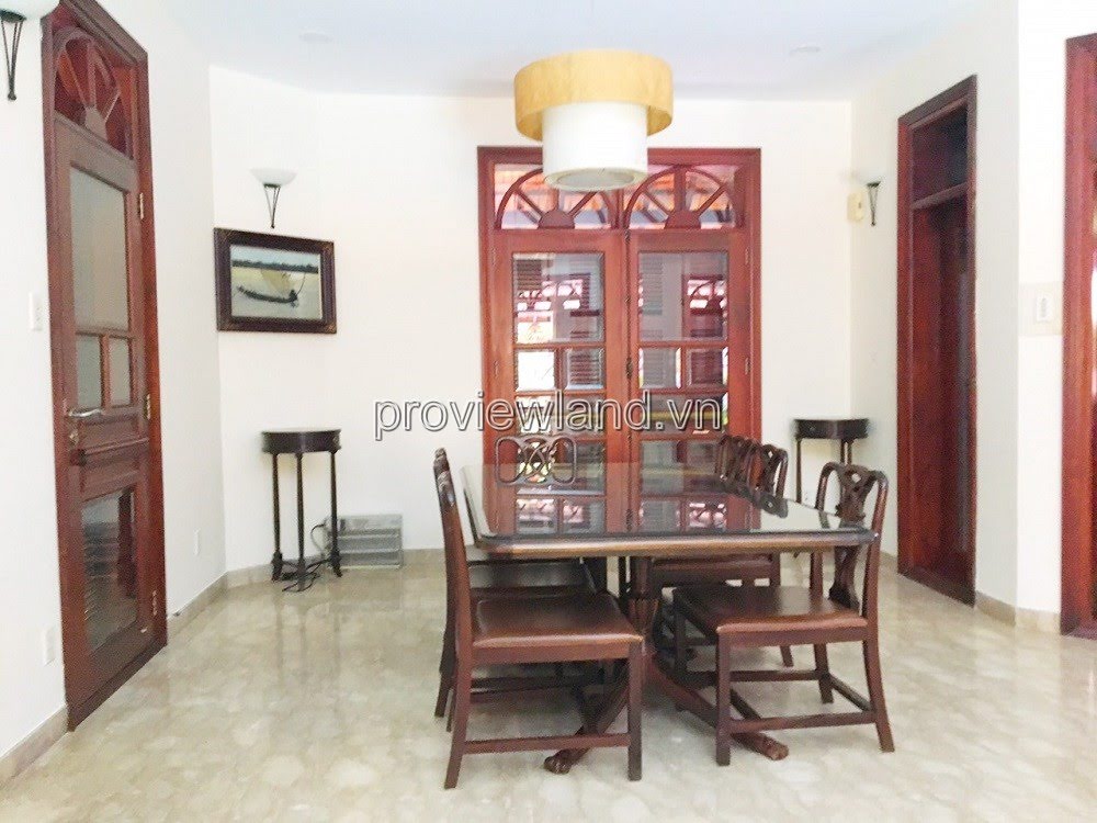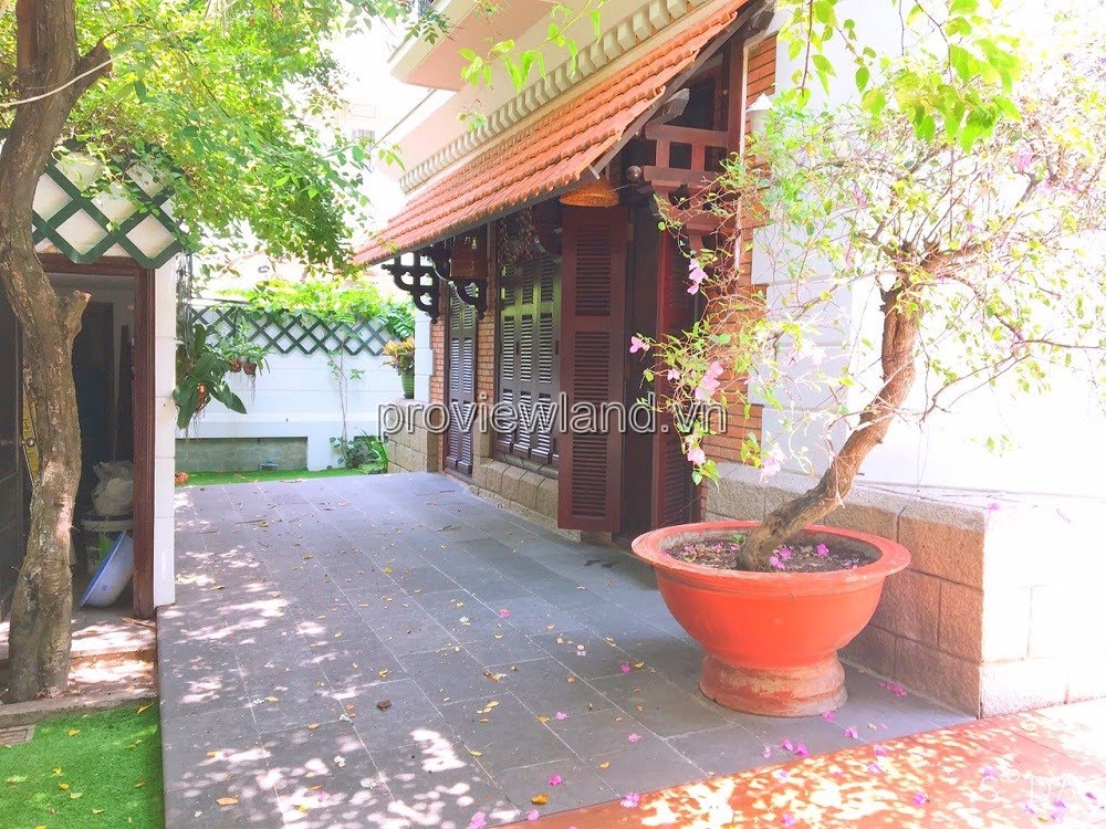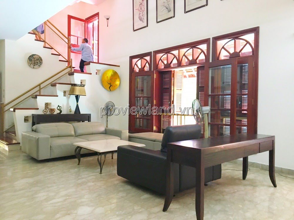 Villa for rent at Fideco Thao Dien high-class villa area, area 450m2. The villa has 1 ground floor, 1 floor, attic and garden. There are 4 bedrooms, 2 living rooms, kitchen. Villa is fully equipped with furniture, garage, swimming pool, fish pond, convenient to stay.