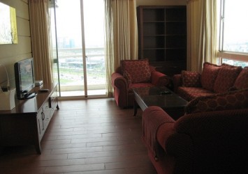 There are 2 views ( look at District 1 and another river view), usable area: 140 sqm, including 3 bedrooms, 3 bathrooms, kitchen, living room. It has fully equipped.