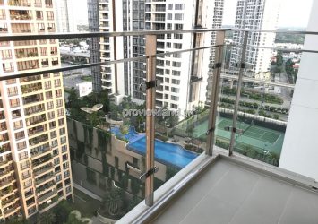 Estella Heights apartment for rent, corner unit with middle floor of T1 tower, designed with 3 bedrooms, 2 bathrooms, large living room, kitchen. The apartment has a total area of 130m2 and is fully equipped with high-class furniture, view of internal area & District 1.