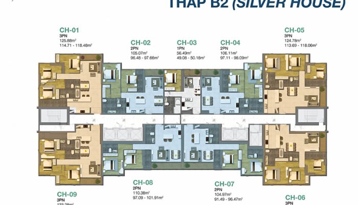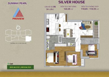 Luxury apartment for sale in Sunwah Pearl Binh Thanh has an area of 125m2, modern architecture includes 3 bedrooms, 2 bathrooms, living room, dining room, kitchen, balcony, … clearance area of 114.5m2.