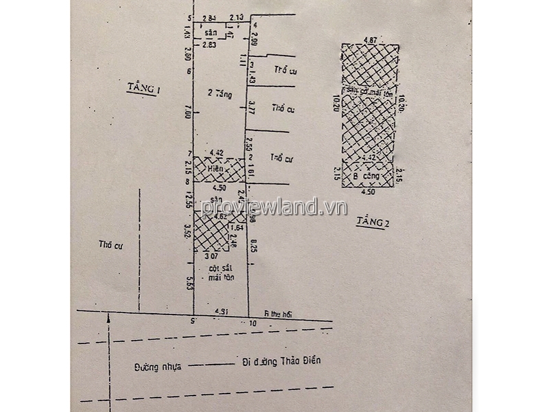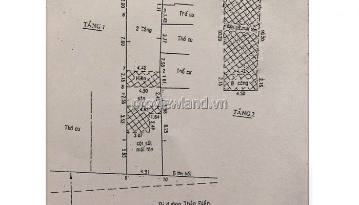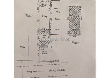 The land for sale in front of Hanoi Highway Thao Dien has land area of 121m2 = 4.5x25m, southeast direction, current status of the house with mezzanine, the house is empty.
