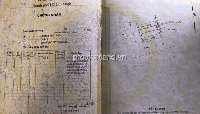 Land for sale car alley on Quoc Huong street, Thao Dien, City. Thu Duc (former District 2), main road 8m, book area 4x17m – 68m2, west direction