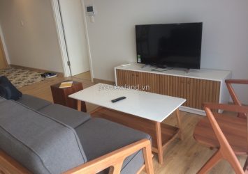 Masteri Thao Dien apartment for rent 86 sqm of area at T1 Tower on 38th floor. Living room, kitchen and dining table have sliding door to balcony overlooking to river very light and fresh. 2 bedrooms have wood floor, all bedroom have window very light. 2 convenient bathrooms. Apartment very modern with full deluxe furniture. In addition, almost furniture made by wood, brings owner not only a comfortable life but also close to natural life in there. Facilities at Masteri Thao Dien: swimming pool, park, children’s playground, roof garden pick, restaurant, cinema, gym, etc.