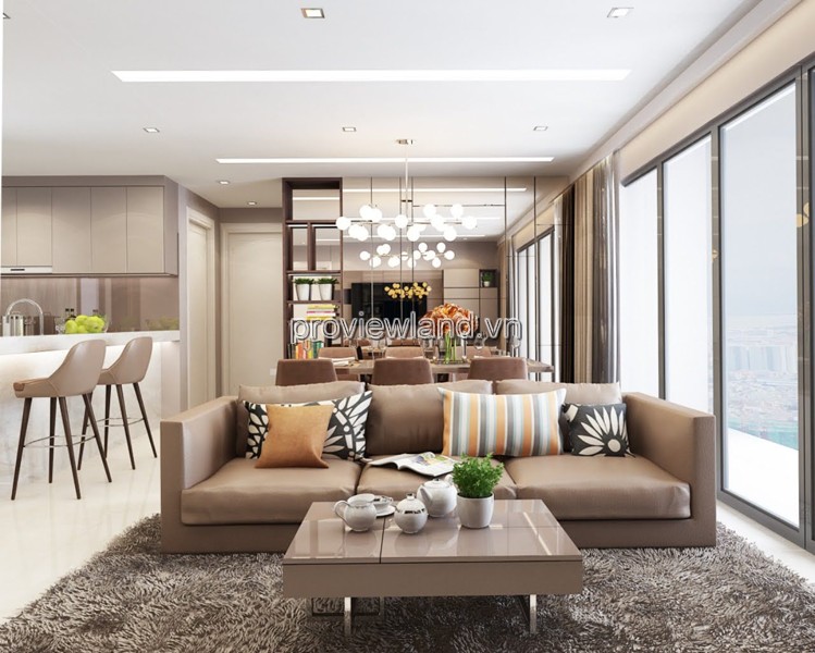 Masteri Thao Dien apartment for rent high floor T5 tower has an area of 91m2 including 3 bedrooms, 2 bathrooms, living room adjoining kitchen. The apartment is designed with modern open space to create a spacious feeling and has been fully furnished with high-class furniture.