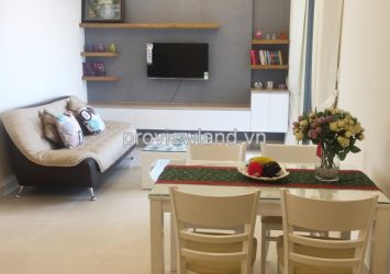 Masteri Thao Dien for rent 2 bedrooms at T4 Tower on 28th floor, 70 sqm of area. Large living room have big sliding door to balcony very airy and light. Kitchen and dining table in the living room. 2 bedrooms have wood floor and wood cabinets, also have window very light. 2 convenient bathrooms. Apartment full furniture with elegance design. In addition, almost furniture made by wood, brings owner not only a comfortable life but also close to natural life in there. Facilities at Masteri Thao Dien: swimming pool, park, children’s playground, roof garden pick, restaurant, cinema, gym, etc.