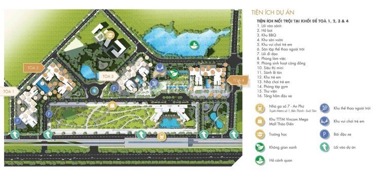 High-end utilities: swimming pool, gym, 24/7 supermarket, children’s area, Vincom Mega Mail.