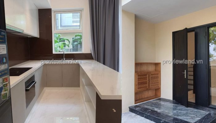 Palm Residence townhouse for rent in District 2 has a European style, classy and luxurious design. The architecture consists of 1 ground floor and 2 floors, with a land area of 5.2x17m = 88.4m2, with a construction area of 186.9m2 with 4 bedrooms, 4 bathrooms, dining room, living room and kitchen, etc.