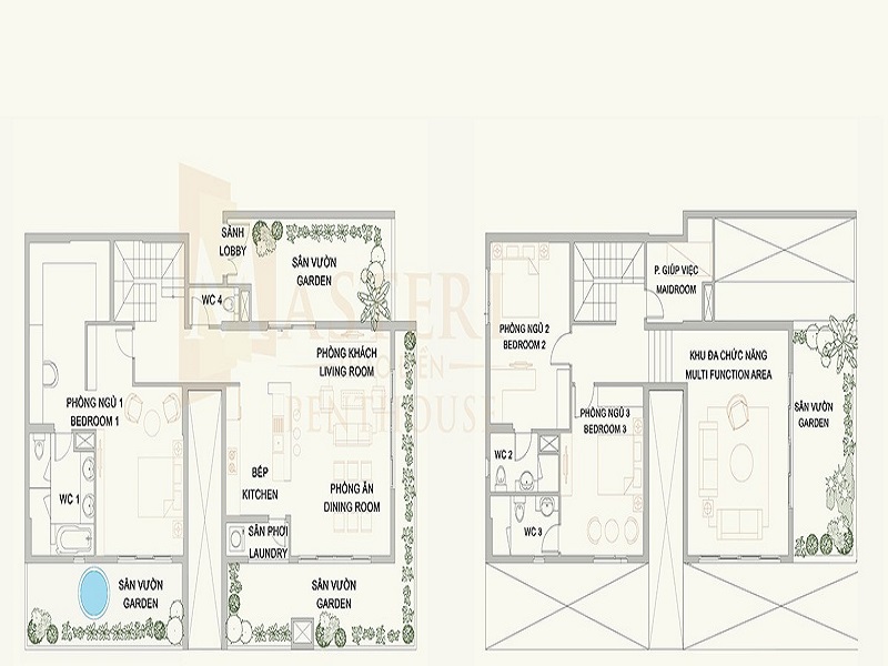 Penthouse Masteri Thao Dien apartment creates a spacious and airy space for homeowners with a separate garden and relaxing landscape lake, endless views, sweeping the whole city. Luxurious, with special architecture and classy amenities, Penthouse Masteri Thao Dien is the perfect combination of modern comfortable life and pure and quiet nature. Penthouse owners get their own magnetic card to go straight to the apartment – a privileged privacy for a super luxury apartment.