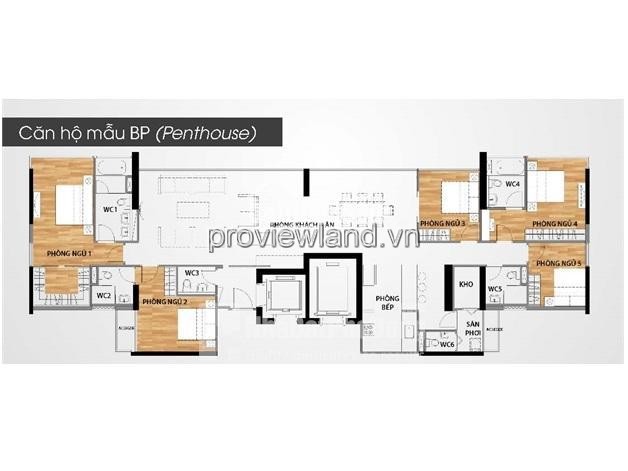 Penthouse apartment for sale at Waterina Suites District 2, located on 23 + 24 floor, area: 332.50m2. Including 5 bedrooms + 6 bathrooms, living room + dining room, bedrooms all overlooking the Saigon River, southwest, the northeastern main door, the status quo of the house.