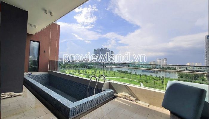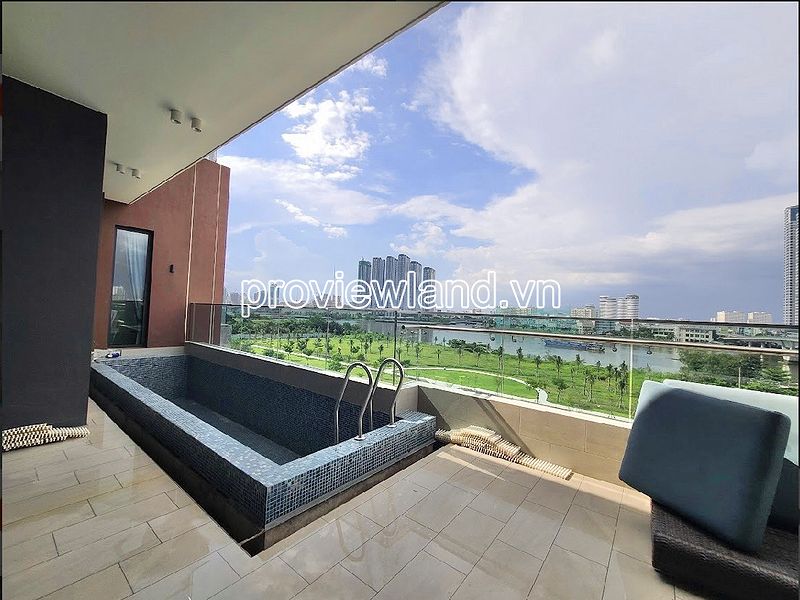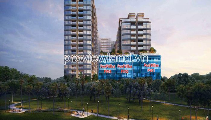 – Pool Villa apartment is located in a low-rise building (04 floors) at the project’s podium, the apartment has a large balcony and a direct view of the Saigon River, although the floor is low, the view is not blocked.
