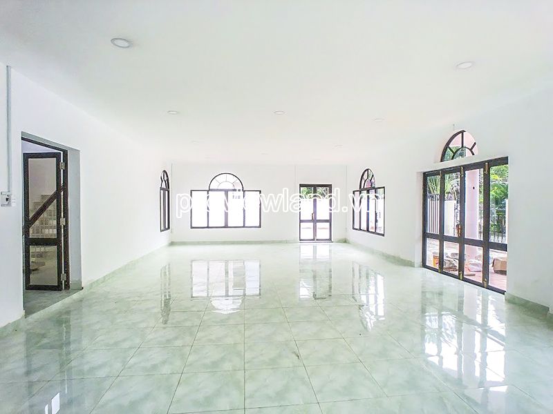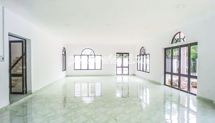 Thao Dien Villa for rent at Street 56, Phu Nhuan Compound Thao Dien area – Thu Duc City. The villa has a land area of 480m2, 1 ground floor architecture, 1 floor, with 5 bedrooms, 5 bathrooms, living room, kitchen, … with large garden, private garage, unfurnished house.