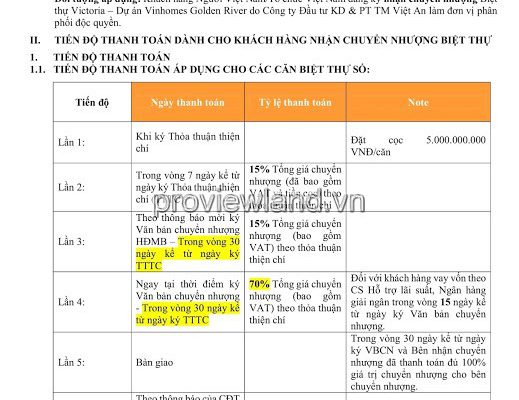 Second time: 7 days later: 15% of the total transfer price (including VAT and deposit)