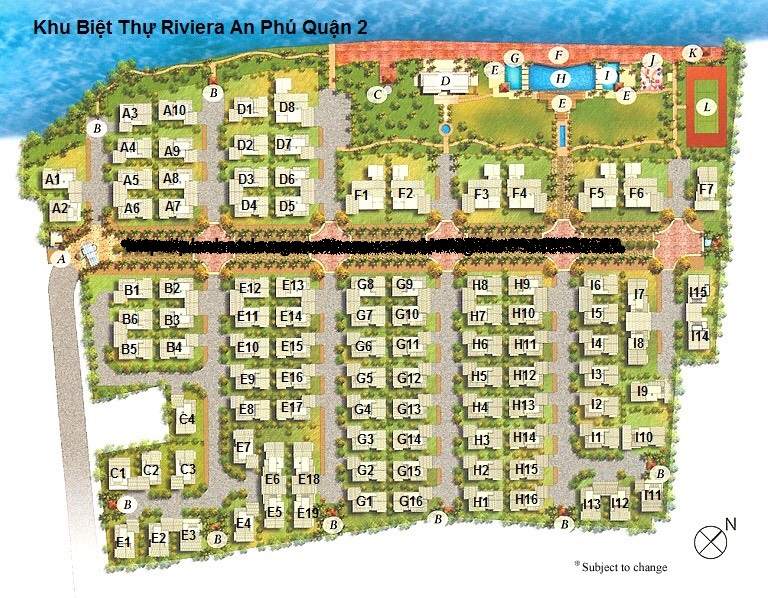 Villa Riviera An Phu for sale in District 2, with a land area of 304m2, including 1 ground floor, 2 floors, with a large garden.
