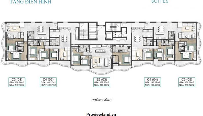 Waterina Suites apartment for sale, C3-xx. 01, middle floor, with 3 bedrooms, 2 bathrooms and kitchen. The apartment for sale is designed in Japanese style with an area of 159m2, owns river view.